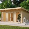 Die Blockhütte Ruben wird in klassischer Blockbohlenbauweisegefertigt und gewährleistet somit einen einfachen Aufbau und eine stabileKonstruktion. Die großen Fenster und die vielen Glasflächen in den Türenvermitteln das Gefühl, im Freien zu sein, auch wenn man drinnen ist! DasDesign, die Optik und die Haptik dieses Blockhauses ist nicht alltäglich undwird sicherlich ein echter Blickfang in Ihrem Garten sein. Mit verschiedenwählbaren Wandstärken kann die Blockhütte Ruben für unterschiedliche Zweckeeingesetzt werden.