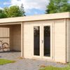 Entdecken Sie das Blockhaus Wouter mit Überdachung, die perfekte Ergänzung Ihres Gartens für Entspannung und Funktionalität. Die Besonderheit des Blockhauses Wouter ist die Überdachung, die die Sommersaison verlängert. So haben Sie einen wettergeschützten Ort, an dem Sie Ihren Garten länger genießen können. Die Überdachung ist mit einer einzigartigen Holzlattenwand versehen, die dafür sorgt, dass Tageslicht ins Innere einfallen kann, Sie aber trotzdem mehr Privatsphäre genießen können. Werten Sie Ihren Garten mit dem Blockhaus Wouter auf und genießen Sie einen modernen Entspannungsbereich und zusätzlichen Stauraum.