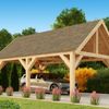 Die dicken Kiefernholzbalken, aus denen dieser Carport besteht, garantieren eine solide Konstruktion. Das Satteldach betont die Höhe und lässt diesen Carport sehr geräumig erscheinen. Natürlich kann Aaron Carport auch als Überdachung genutzt werden, so dass nicht nur Ihr Auto, sondern auch Sie selbst Schutz vor dem Wetter finden können!