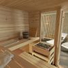 Erfahren Sie den Luxus einer charakteristischen massiven Sauna und den damit verbundenen vollen Duft von Massivholz.