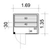 Wandstärke: 77 mm ( 16 mm Holz - 45 mm Isoliermaterial - 16 mm Holz)
