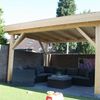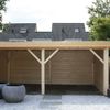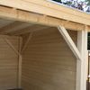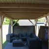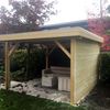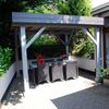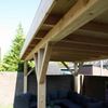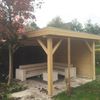 Dachverkleidung: 20 mm Dachholz Abmessung Pfosten: 140 x 140 mm (gegen den Strich verleimt, für extra Stärke)