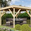 Abmessung Streben: 90 x 90 mm Wir empfehlen Ihnen dringlich die Pfosten Ihrer Gartenlaube mit dem Boden zu verankern. Mit dieser Maßnahme sorgen Sie nicht nur dafür, dass Ihre Gartenlaube besser vor Wind geschützt ist, sondern auch die Unterseite der Pfosten (kein direkter Bodenkontakt) ist besser geschützt und bedarf dadurch weniger Instandhaltung. Wir können Ihnen für die verschiedensten Gegebenheiten, die am besten geeigneten Verankerungen liefern. Mehr Informationen finden Sie unter Zubehör.