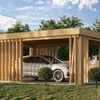 Innovativ, äußerst funktional und schön stabil. Mit den robusten Balken und einem offenen Look sorgen Sie für eine moderne Konstruktion neben Ihrem Haus. Die stilvollen Balken wurden so platziert, dass sie neben der offenen Struktur auch eine gewisse Dichte formen, wie Sie sie von einer Garage erwarten würden.