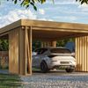 Innovativ, äußerst funktional und schön stabil. Mit den robusten Balken und einem offenen Look sorgen Sie für eine moderne Konstruktion neben Ihrem Haus. Die stilvollen Balken wurden so platziert, dass sie neben der offenen Struktur auch eine gewisse Dichte formen, wie Sie sie von einer Garage erwarten würden.
