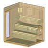 Die Bänke, die Kopfstützen und der Boden sind aus Espennholz gefertigt. Diese Art von Holz speichert weniger Wärme und bleibt daher angenehm zu berühren und zu liegen.