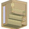 Die Bänke, die Kopfstützen und der Boden sind aus Espennholz gefertigt. Diese Art von Holz speichert weniger Wärme und bleibt daher angenehm zu berühren und zu liegen.