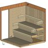 Die Bänke, die Kopfstützen und der Boden sind aus Espennholz gefertigt. Diese Art von Holz speichert weniger Wärme und bleibt daher angenehm zu berühren und zu liegen.