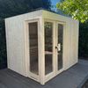 Ohne Saunaofen: Wir empfehlen einen Ofen mit einer Leistung von 9 kW. Diese können Sie als Zubehör zu diesem Produkt dazu bestellen.