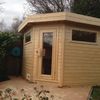 Das Besondere an diesem Modell: es ist eine sehr aufwändige Luxusausführung Holzart: skandinavische Fichte mit doppelter Feder und Nut mit einer speziellen, absolut dichten Eckverbindung.
