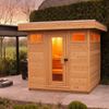 Ohne Saunaofen: Wir empfehlen einen Ofen mit einer Leistung von 8 kW. Diesen können Sie als Zubehör zu diesem Produkt dazu bestellen.