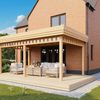 Diese Veranda ist aus Kiefernholz gefertigt und wird unbehandelt geliefert. Verlängern Sie Ihre Outdoor-Saison unter dieser stilvollen Veranda.