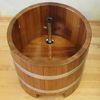 Mit einem Durchmesser von 40 cm bietet diese Wanne genügend Platz, um sich nach einem langen Tag einen kleinen Moment der Entspannung zu gönnen. Die Wanne ist aus Lärchenholz gefertigt und bietet dank der an der Wanne befestigten Metallringe eine zusätzliche Verstärkung. Da an der Wanne Griffe angebracht sind, können Sie die Wanne leicht bewegen. Genießen Sie jederzeit und überall ein herrliches Fußbad.