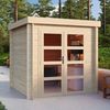 Ein Debro-Blockhaus bietet mehrere Möglichkeiten, damit Sie es an Ihre Bedürfnisse anpassen können. So können Sie zum Beispiel das Blockhaus Montbrun mit einem Dach erweitern, das auf der linken oder rechten Seite angebracht werden kann. Sie können dieses Modell unbehandelt oder imprägniert kaufen.