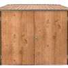 Dieser Duramax Metall-Fahrrad-Abstellraum ist aus verzinktem Stahl mit einer Farbbeschichtung in Holzoptik gefertigt. Das bedeutet, dass der Stahl mit einer dünnen Zinkschicht überzogen ist, die das Material besser vor Korrosion schützt. Im Allgemeinen ist Metall ein haltbares und witterungsbeständiges Material, das eine lange Lebensdauer hat und somit einen geringen Wartungsaufwand garantiert. So brauchen Sie diesen Fahrrad-Abstellraum nicht zu beizen oder zu streichen, was Ihnen Zeit spart! Bei Verschmutzung können Sie den Fahrrad-Abstellraum einfach und schnell mit einem Gartenschlauch abspritzen.