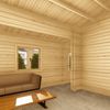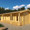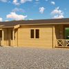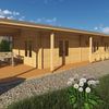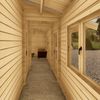 Das Vordach ist teilweise mit Zäunen abgeschirmt und bietet genügend Platz für die ganze Familie oder Freunde zum Sitzen, Entspannen oder gemeinsamen Essen. Das Innere besteht aus einem geräumigen Wohnzimmer, zwei geräumigen Schlafzimmern und Platz für ein Badezimmer. Das Wohnzimmer und die Schlafzimmer haben Flügeltüren, die sich zum Vordach hin öffnen und die Natur ins Haus holen. Das ist doch schön, wenn man aufwacht, oder?