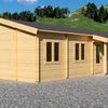 Möchten Sie ein zweites Zuhause an einem schönen Urlaubsort und klingt ein Chalet nach Ihrer Tasse Tee? Dieses geräumige Chalet hat viele Zimmer, alle im Erdgeschoss, ein kleines Vordach über der Eingangstür und ein großes L-förmiges Vordach über die gesamte Länge und Breite.