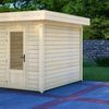 Das Bremen Gartenhaus ist das kleinste Gartenhaus der Serie und hat eine Größe von 200x300 cm. Dieses Gartenhaus ist aus natürlichem* Kiefernholz gefertigt. Das Bremen kann als einzelnes Gartenhaus bestellt werden, kann aber auch mit einer Markise von 200, 300, 400 oder 500 cm kombiniert werden. Möchten Sie ein geschlossenes Dach schaffen? Dann wählen Sie auch eine Rück- und/oder Seitenwand! Die Seitenwand ist 300 cm lang und passt somit zu jeder Markisengröße. Die Rückwand ist 200 cm lang. Wählen Sie also zwei oder mehr Rückwände für größere Markisen.