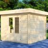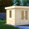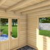Diese Blockhütte ist auch in unbehandeltem Fichtenholz bestellbar.