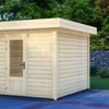 Köln hat eine Größe von 300x300 cm. Dieses Gartenhaus ist aus natürlichem* Kiefernholz gefertigt. Der Köln kann als eigenständiger Pavillon bestellt werden, kann aber auch mit einem Sonnensegel von 200, 300, 400 oder 500 cm kombiniert werden. Möchten Sie ein geschlossenes Dach schaffen? Dann wählen Sie auch eine Rück- und/oder Seitenwand! Die Seitenwand ist 300 cm lang und passt daher zu jeder Markisengröße. Die Rückwand ist 200 cm lang. Wählen Sie also zwei oder mehr Rückwände für größere Markisen.