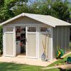 Die Gartenhäuser Utility sind optisch ansprechend und fügen sich gut in Ihren Garten ein. Sie sind kostengünstig und wartungsfrei. Sie müssen nicht nachbearbeitet, lackiert oder gestrichen werden. Eine einfache Reinigung mit Wasser ist ausreichend. Sie sind umweltfreundlich. Es sind keine Pflegeprodukte erforderlich und sie sind zu 99 % recycelbar. Sie sind widerstandsfähig gegen kalte und heiße Wetterbedingungen.