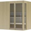Die Saunabänke sind aus hochwertigem Espenholz gefertigt. Diese Holzart ist sehr hell in der Farbe und leitet Wärme schlechter als andere Holzarten und so bleiben Sitzfläche und Rückenlehne relativ kühl. Espenholz hat die weitere Eigenschaft, dass es nicht splittert und so ist das Sitzen und Liegen auf den Bänken besonders angenehm.