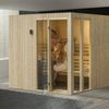 Die exklusive Hot Orange Sauna-Serie sorgt garantiert für Entspannung und Genuss. Erleben Sie den Luxus von sorgfältig ausgewähltem Rotholz (Fichte). Diese Sauna-Serie ist mit einer Höhe von 205 cm deutlich höher als die Standardmodelle und mit einer Glastür aus farblosem Glas oder Bronze-Glas erhältlich. Dieses Modell wird in der Standardausführung mit einer farblosen Glastür geliefert. Unter dem Menüpunkt „Zubehör“ können Sie die Sauna auch mit einer Bronze-Glastür bestellen.