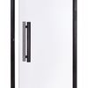 Der Anschlag dieser Tür kann sowohl rechts als auch links sein und bei der Montage durch drehen der Tür bestimmt werden. Die Scharniere sind aus Aluminium mit einer Kunststoffabdeckung.