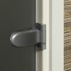 Der Anschlag dieser Tür kann sowohl rechts als auch links sein und bei der Montage durch drehen der Tür bestimmt werden. Die Scharniere sind aus Aluminium mit einer Kunststoffabdeckung.