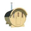 Diese schöne Fasssauna wird mit Dachschindeln geliefert, die nicht nur vor Witterungseinflüssen schützen, sondern dem Dach der Sauna auch ein schönes Finish verleihen. Die Sauna verfügt über einen vorderen Bereich, in dem Sie sich umziehen können, bevor Sie die Sauna betreten.