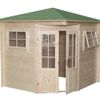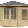 Diese Blockhütte kann auch imprägniert bestellt werden . Imprägnieren schützt Ihr Holz langfristig. Um der Gefahr der Beschädigung der Beschläge vorzubeugen, montiert Interflex die Beschläge direkt nach dem Imprägnieren.