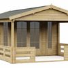 Diese Blockhütte ist auch lackiert oder aus unbehandeltem Fichtenholz erhältlich .