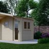 Diese moderne Außensauna 3432 S ist Teil der Azalp Interflex-Kollektion. Die Außenseite der Außensauna 3432 S ist aus massivem Kiefernholz gefertigt und hat einen modernen Look. Die Wandkonstruktion ist extra dick und zudem energiesparend. Darüber hinaus ist die gesamte Konstruktion zusätzlich durch Dachbalken verstärkt. Die Außensauna 3432 S verfügt über eine Tür mit Fenster und einen Vorraum - ideal zum Umziehen. Außerdem verfügt die Außensauna 3432 S über ein Giebeldach. Die Bodenkonstruktion besteht aus 28 Millimeter dicken, imprägnierten Bodenbalken. Der Innenraum der Außensauna ist aus Erlenholz gefertigt.