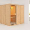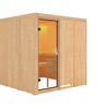 Die Karibu Rodin ist eine stilvolle Innensauna, die mit drei bequemen Bänken ausgestattet und für vier Personen geeignet ist. Die Sauna hat eine schöne Glastür, die eine offene und helle Atmosphäre schafft. Mit der Karibu Rodin holen Sie sich ein komplettes Saunaerlebnis nach Hause, ideal zum Entspannen und Erholen, ohne das Haus verlassen zu müssen.