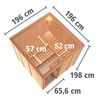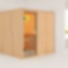 Die Sauna wird standardmäßig mit 3 Saunabänken aus Espe, der 1. Kopfstütze aus Espe und einem Ofenschutzgestell aus Fichte geliefert. Weiteres Zubehör kann bei der Bestellung hinzugefügt werden.