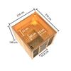 Die Sauna wird standardmäßig mit 3 Saunabänken aus Espe mit Rückenlehne, 1 Kopfstütze aus Espe und einem Ofenschutzgestell aus Espe geliefert. Weiteres Zubehör kann bei der Bestellung hinzugefügt werden.