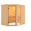 Die Karibu Fiona 1 ist eine kompakte Innensauna, die Stil und Komfort vereint. Mit einer Glastür und einem zusätzlichen Glasfenster bietet diese Sauna eine offene und helle Atmosphäre. Ausgestattet mit zwei bequemen Bänken bietet die Fiona 1 ausreichend Platz für zwei Personen und ist damit die perfekte Wahl für alle, die ein intimes Saunaerlebnis auf kleinerem Raum suchen. Das moderne Design macht diese Sauna zu einer schönen Ergänzung für jedes Interieu.