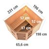 Die Sauna wird standardmäßig mit 3 Saunabänken aus Espe, der 1. Kopfstütze aus Espe und einem Ofenschutzgestell aus Fichte geliefert. Weiteres Zubehör kann bei der Bestellung hinzugefügt werden.