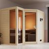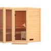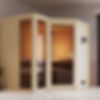 Die Karibu Amara Innensauna ist die perfekte Kombination aus modernem Design und Komfort, ideal für ein entspannendes Saunaerlebnis in den eigenen vier Wänden. Mit ihrem geräumigen Grundriss, der für vier Personen geeignet ist, und drei bequemen Bänken bietet diese Sauna viel Platz zum Genießen. Dank der Ganzglastür und der beiden großen Fenster schafft die Amara eine offene und helle Atmosphäre, so dass sich die Sauna nahtlos in den Rest des Raumes einfügt.