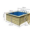 Sommer, Spaß und Entspannung! Mit dem richtigen Pool wird der Garten zum Erholungsort und Spaßbad in einem. Das Beste an unseren Rechteckpools: Durch die spezielle Kessdruckimprägnierung Klasse 4 kann dieser Pool in den Boden eingesetzt werden. Der Rechteckpool 1 hat ein Außenmaß von 350x320 cm. Mit einer Füllmenge von 9772 Liter ist jede Menge Badespaß vorgesehen. Erweitern Sie Ihren Pool optional mit 2 möglichen Terrassen und erschaffen sich einen Sonnenplatz. Beobachten Sie Ihre Kleinen beim Plantschen, während Sie auf einem Liegestuhl auf der Terrasse die Sonne genießen. Der Pool besteht aus 44mm starken, kesseldruckimprägnierten Blockbohlen, welche im klassischen Steck- und Schraubsystem montiert werden. Im Inneren sorgt eine 0,6mm starke PVC-Folie für den Wassererhalt und ein angenehmes Gefühl unter Ihren Füßen. Bei einer max. Wasserhöhe von 111 cm können Sie sich beim lockeren Schwimmen entspannen und haben bei Bedarf dennoch einen sicheren Stand. Liegt der nächste Urlaub noch in weiter Ferne schaffen Sie sich mit dem Rechteckpoolim Garten Ihr eigenes kleines Urlaubsfeeling. Ein bisschen Sand um den Pool geschüttet, ein paar Palmen aufgestellt und schon haben Sie Ihren eigenen kleinen privaten Strand. Einen Drink aus einer Kokosnuss und eine Blumenkette um den Hals und schon können Sie sich auf Ihrem Liegestuhl in die Südsee träumen. Wenn es dann zu warm wird tauchen Sie in das kühle Wasser ein. Erweitern Sie Ihre Möglichkeiten im eigenen Garten und holen Sie sich ein bisschen Urlaubsfeeling nach Hause mit dem Rechteckpool 1.