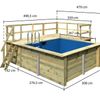 Sommer, Spaß und Entspannung! Mit dem richtigen Pool wird der Garten zum Erholungsort und Spaßbad in einem. Das Beste an unseren Rechteckpools: Durch die spezielle Kessdruckimprägnierung Klasse 4 kann dieser Pool in den Boden eingesetzt werden. Der Rechteckpool 1 hat ein Außenmaß von 350x320 cm. Mit einer Füllmenge von 9772 Liter ist jede Menge Badespaß vorgesehen. Erweitern Sie Ihren Pool optional mit 2 möglichen Terrassen und erschaffen sich einen Sonnenplatz. Beobachten Sie Ihre Kleinen beim Plantschen, während Sie auf einem Liegestuhl auf der Terrasse die Sonne genießen. Der Pool besteht aus 44mm starken, kesseldruckimprägnierten Blockbohlen, welche im klassischen Steck- und Schraubsystem montiert werden. Im Inneren sorgt eine 0,6mm starke PVC-Folie für den Wassererhalt und ein angenehmes Gefühl unter Ihren Füßen. Bei einer max. Wasserhöhe von 111 cm können Sie sich beim lockeren Schwimmen entspannen und haben bei Bedarf dennoch einen sicheren Stand. Liegt der nächste Urlaub noch in weiter Ferne schaffen Sie sich mit dem Rechteckpoolim Garten Ihr eigenes kleines Urlaubsfeeling. Ein bisschen Sand um den Pool geschüttet, ein paar Palmen aufgestellt und schon haben Sie Ihren eigenen kleinen privaten Strand. Einen Drink aus einer Kokosnuss und eine Blumenkette um den Hals und schon können Sie sich auf Ihrem Liegestuhl in die Südsee träumen. Wenn es dann zu warm wird tauchen Sie in das kühle Wasser ein. Erweitern Sie Ihre Möglichkeiten im eigenen Garten und holen Sie sich ein bisschen Urlaubsfeeling nach Hause mit dem Rechteckpool 1.