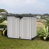 Der Store it Out Midi verfügt über eingebaute Regalträger, auf denen Sie Regale anbringen können, damit Sie Ihr Gartenzubehör geordnet aufbewahren können. Die Regale selbst sind nicht enthalten. Der Boden neigt sich leicht zu den Türen, was es einfach macht Ihre Container, den Rasenmäher oder den Grill hinein zu befördern. An der Tür befindet sich ein Knopf, mit dem Sie die Türen mit dem Fuß entriegeln können.