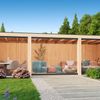Der Kirk & Michaels Magnus ist ein luxuriöser Außenverbleib und kann für eine Vielzahl von Zwecken genutzt werden, z. B. als Aufenthaltsraum, Gartenbüro oder Hobbyraum. Der Außenverbleib verfügt über große Glasschiebewände an der Vorderseite, die für natürliches Licht im Inneren sorgen und gleichzeitig vor dem Wetter schützen. Der Magnus ist eine elegante, moderne und stilvolle Ergänzung für den Garten. Der Rahmen des Außenverbleibs ist aus gehobeltem Douglasienholz gefertigt und hat robuste Balken von 19.5x19.5 cm.
