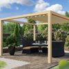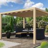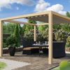 Die Pergola „Galba“ von Kirk & Michaels schafft einen gemütlichen Platz in Ihrem Garten, um sich im Sommer zu entspannen. Sie bietet einen überdachten, aber offenen Raum, der Sonnenlicht und Luft durchlässt. Eine Pergola bietet die Möglichkeit, Kletterpflanzen auf dem Dach anzubauen, die zu mehr Grün im Garten beitragen können. Wenn Sie dennoch lieber geschützt vor der Sonne sitzen möchten, können Sie ein Harmonikatuch anbringen. Dieses Tuch können Sie selbst öffnen und schließen, so dass Sie selbst entscheiden können, wie viel Schatten Sie wünschen. Die Konstruktion besteht aus einem gehobelten Douglasienrahmen mit schlanken 14 x 14 cm großen Pfosten. Die Eckpfosten des Modells sind mit einer Halbholzverbindung und Zapfenverbindungen und Verstrebungen montiert. Dies sorgt dafür, dass die Konstruktion nicht nur sehr stabil ist, sondern auch eine schöne saubere Oberfläche hat und keine Metallverbindungen benötigt.