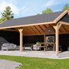 Die Überdachung mit Satteldach Decis von Kirk & Michaels ist ein echter Blickfang im Garten, der für verschiedene Zwecke genutzt werden kann. Der Rahmen besteht aus gehobelter Douglasie mit schlanken Balken von 14 x 14 cm. Der Stil dieser Die Überdachung mit Satteldach Decis ist für alle, die es traditionell mögen und dennoch eine stilvolle Überdachung als echte Bereicherung des Gartens wünschen. Da die Decis einen extra hohen Dachfirst hat und vorne höher ist als hinten, vermittelt die Überdachung ein großzügiges Gefühl. Das schafft eine wunderbare Atmosphäre im Garten und einen schönen Platz für alle Ihre Sommergrillfeste, Gartenpartys oder für einen netten Lounge-Bereich, in dem Sie sich mit Freunden und Familie vergnügen können. Die schwarz lackierten Fichtenwände bieten dann auch zusätzlichen Schutz vor dem Wetter.