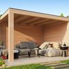 Die Überdachung Marius Douglas von Kirk and Michaels ist eine schöne Ergänzung für Ihren Garten, wenn Sie nach einer modernen und eleganten Überdachung suchen. Dieses Modell eignet sich hervorragend als zusätzlicher Wohnbereich oder als Außenküche. So können Sie Ihren Garten das ganze Jahr über genießen. Dank der Douglasien-Wände in der Konstruktion sind Sie vor Wind und Wetter geschützt und können draußen sitzen, wann immer Sie wollen. Ist es draußen schön warm, aber leider auch regnerisch? Kein Problem, Sie können das warme Wetter im Trockenen genießen und z.B. unter der Marius ein Buch lesen. Die Konstruktion besteht aus einem gehobelten Douglasien-Rahmen mit robusten 19.5x19.5 cm Ständern.