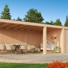 Das stilvolle Aussehen des Gartenhauses mit Überdachung wurde von Kirk und Michaels speziell für alle entworfen, die es modern und schlicht mögen, aber dennoch eine stilvolle Überdachung als echte Bereicherung für den Garten wünschen. Die gesamte Konstruktion ist aus Douglasie gefertigt, was das Gartenhaus mit Überdachung ein natürliches Aussehen verleiht, das sich perfekt in Ihren Garten einfügt.