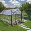Das Gewächshaus hat zwei Oberlichter. Die Belüftung ist in einem Gewächshaus unerlässlich. So können Feuchtigkeit und Wärme entweichen, was die Entwicklung von Schimmelpilzen verhindert. So können Sie die schönsten Pflanzen und köstlichsten Ernten anbauen. Das Gewächshaus ist mit zwei Türen verschlossen, die mit einem Magneten geöffnet bleiben und sich bei einem Windstoß nicht schließen. Die Türen sind verschließbar und die Öffnung ist 195 cm hoch, was einen guten Zugang zum Gewächshaus ermöglicht.