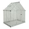 Das Gewächshaus besteht sowohl aus Aluminium als auch aus Polycarbonat. Polycarbonat ist eine Art von Kunststoff, der häufig für die Wände von Gewächshäusern verwendet wird, da es ein sehr leichtes und dennoch starkes Material ist. Sie müssen sich keine Sorgen um einen Sturm machen, bei dem Äste auf das Gewächshaus fallen, da sowohl der Sturm als auch die Zweige von dem Gewächshaus problemlos bewältigt werden können.