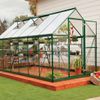 Die Wände und das Dach des Gewächshauses bestehen aus Polycarbonat. Es wird sehr häufig für Gartengewächshäuser verwendet, da es ein sehr stabiler und leichter Kunststoff ist. Außerdem schützt es die Pflanzen vor schädlichen UV-Strahlen. Wie der Aluminiumrahmen sind auch die Wand- und Dachpaneele wartungsfrei. So müssen Sie sich nicht um das Gewächshaus kümmern und können sich ganz auf die Pflanzen konzentrieren.